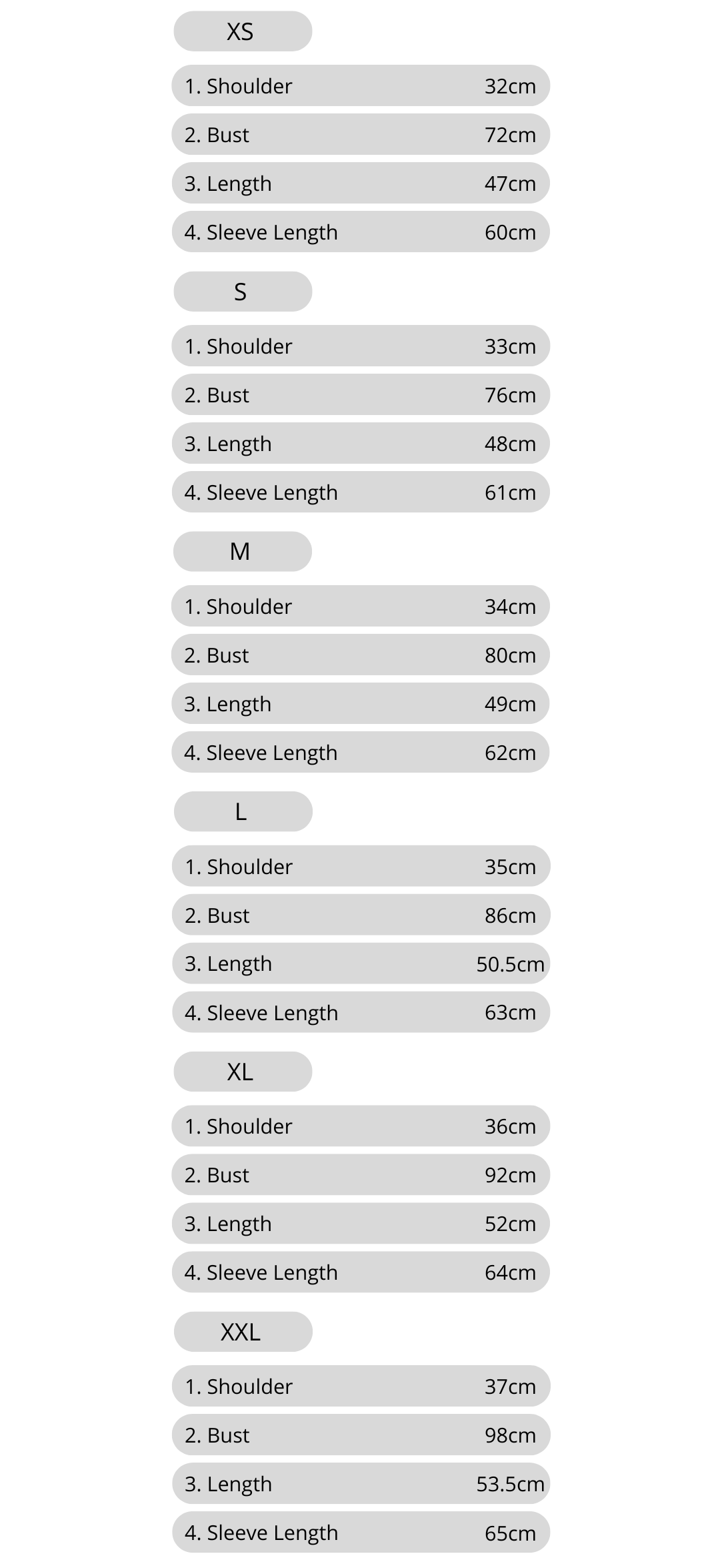 XS S M L XL XXL